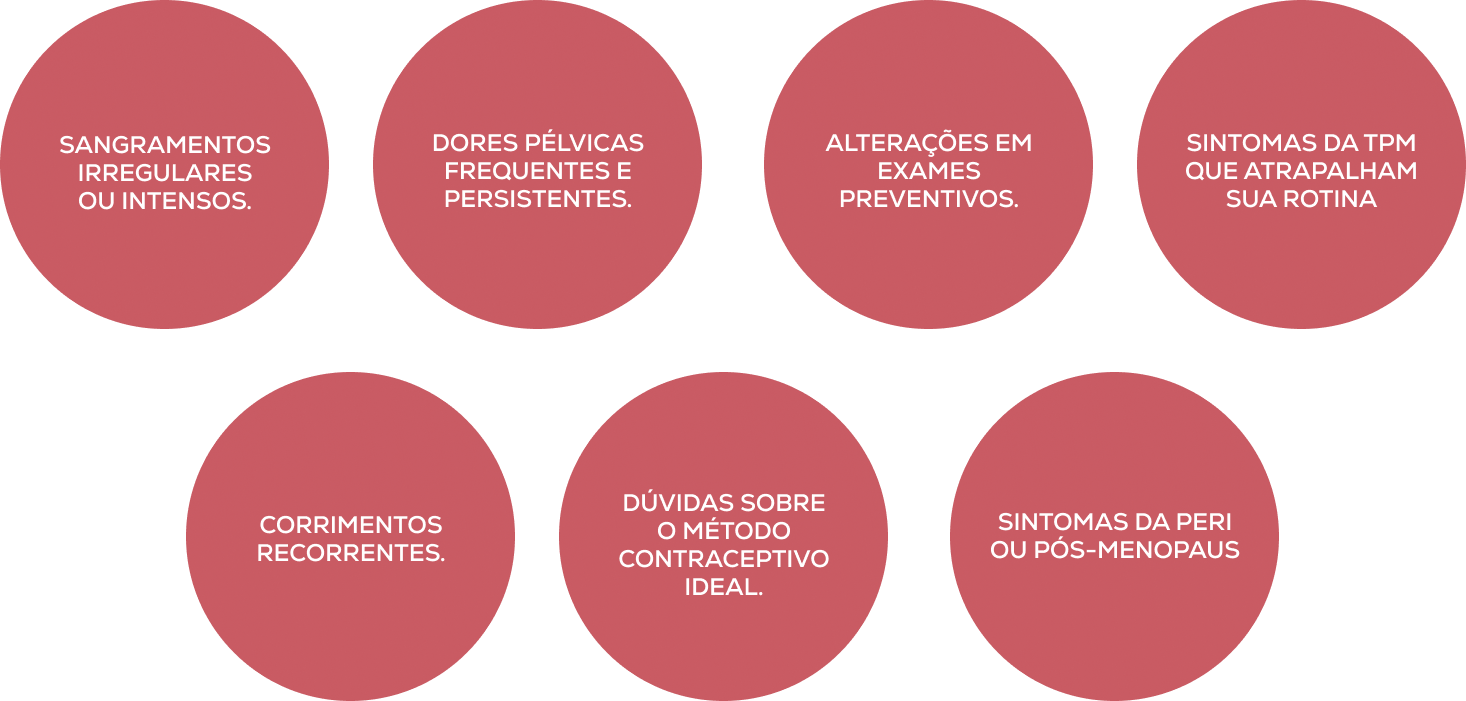 Avaliação de irregularidades no ciclo menstrual, fluxo aumentado, ausência de menstruação ou sangramento após a menopausa.