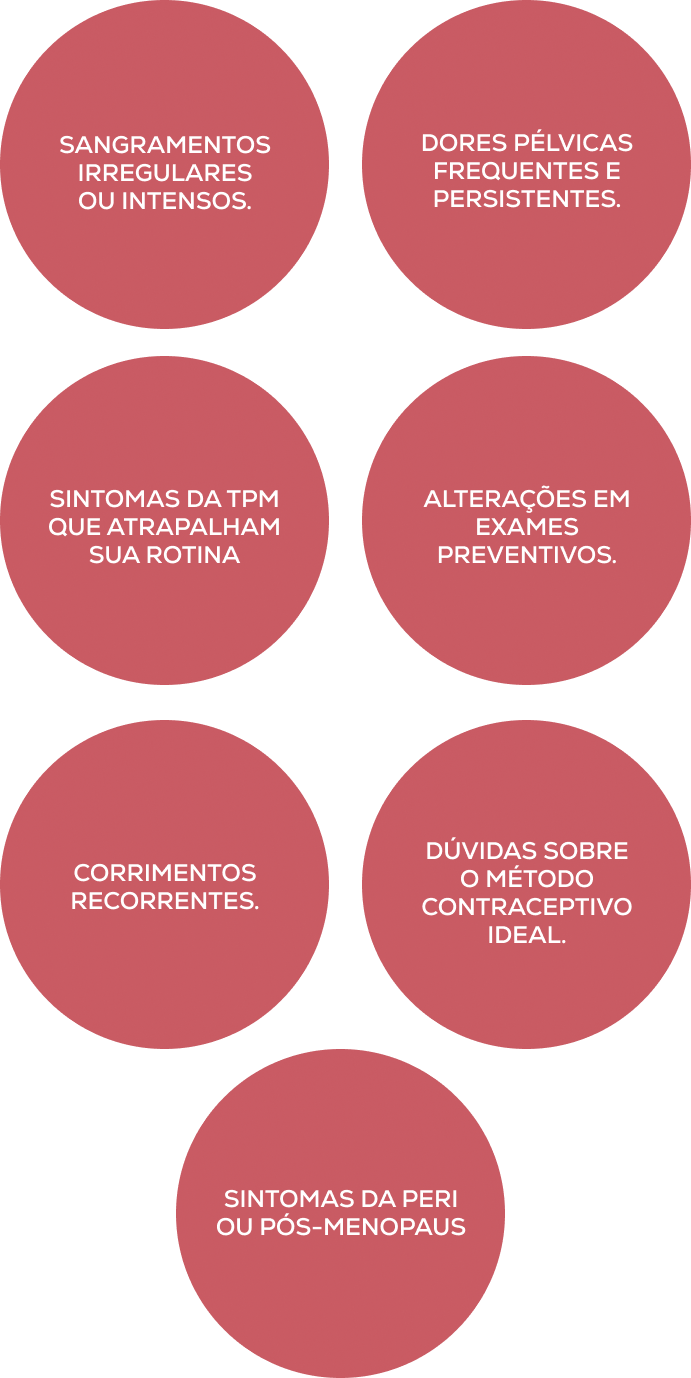 Descoberta da causa e tratamento de condições como endometriose e adenomiose, devolvendo qualidade de vida.