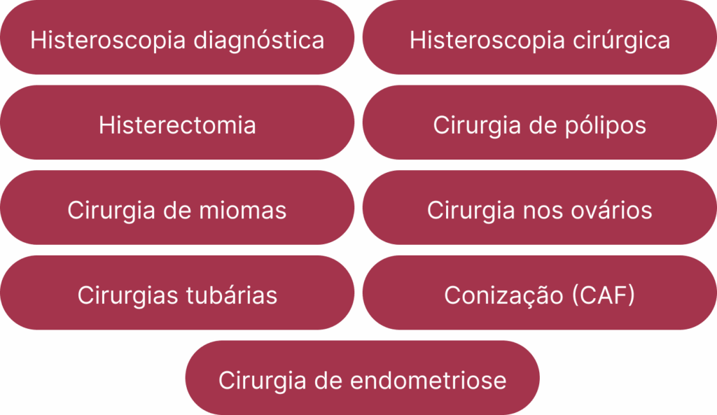 Além das consultas ginecológicas, a Dra. Natália Paseto Pilati também realiza cirurgias ginecológicas, especializada na técnica por videolaparoscópica minimamente invasiva. Sempre com foco em segurança, técnicas modernas e recuperação mais rápida.